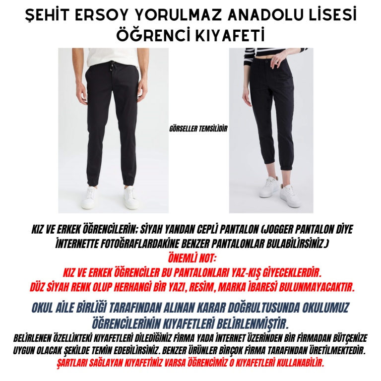 Her veli yukarıdaki fotoğraflarda belirtilen hususlara göre kıyafet teminini dilediği yerden yapacaktır.
