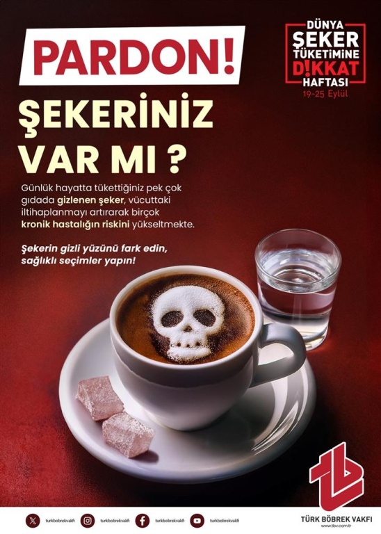 Aşırı şeker tüketiminin insan sağlığını olumsuz etkilediği, obeziteden hipertansiyona, kalp-damar hastalıklarından kronik böbrek yetmezliğine ve depresyona kadar birçok hastalığı tetiklemesi ile devletin sağlık giderlerini arttırması gerçeğinden yola çıkan Türk Böbrek Vakfı, 19–25 Eylül tarihlerini “Dünya Şeker Tüketimine Dikkat Haftası” olarak kutlanmaktadır.